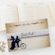 Livro de convidado design de casamento com noiva e noivo de bicicleta. Adicione o nome do evento e a data na coluna, se quiser. Isto vai bem com a Linda Suíte de Casamentos Bicicletas do meu compro. É fácil coordenar tudo para o seu casamento assim que você escolher o tema e o esquema de cores certos. Escolha uma design única para tornar seu dia especial perfeito. A Casa rico tem uma grande variedade de suites de casamento em uma variedade de temas e cores. Por favor, triplique a ortografia e as datas.