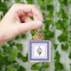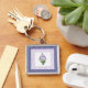 Um Chaveiro prateado muito bonito, com um motivo violeta em Pale Mauve e Green, rodeado por uma Fronteira de Bolinhas Mauve em Branco e uma outra borda de um padrão violeta floral. Parte da coleção Posh e Painterly "Sweet Violets", de uma pintura original de aquarela de Judy Adamson, esta design pode ser ajustada para ajustado qualquer chaveiro quadrado.