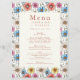 Adicione um toque floral encantador à sua recepção de casamento com este cartão de menu de flor selvagem do estilo vintage. Apresentando uma borda colorida desenhada à mão de flores silvestres bonito, este design botânico lindamente detalhado enquadra seu menu com elegância clássica. Perfeitamente adequado para casamentos de jardim, rústicos ou de temas botânicos, o padrão floral uniforme adiciona uma vibração de safra macia, mantendo um layout limpo e mínimo que garante que seus detalhes de refeições brilhem. Este cartão de menu serve como um elemento prático e decorativo, melhorando a decoração da mesa com um estilo natural, eterno que complementa qualquer festa de celebração de uma forma sofisticada e sincera.