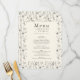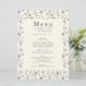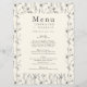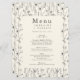 Este delicado cardápio de casamento de flor silvestre apresenta uma elegante fronteira botânica vintage que enquadra a cozinha de sua celebração. A ilustração floral refinada cria uma atmosfera eterno e romântica, perfeita para casamentos de jardim, recepções ao ar livre ou celebrações clássicas de temas antigos. Um design muito pequeno, mas detalhado, que complementa as configurações de casamento rústicas e sofisticadas.
