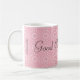 Bonito Pink Pattern Good Coffee Mug com monograma gigante, fácil de personalizar para a ocasião, apenas edite todos os textos! Você também pode adicionar seu próprio logotipo substituindo a imagem do Technotext (ou simplesmente removê-la se necessário).