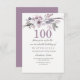 Bonito Purple Floral 100ª Festa de aniversário Convide o Cartão Perfeito para a sua coleção de ocasião especial Correspondência na loja Niche e Nest. Design cortesia de: https://www.etsy.com/shop/SmallHouseBigPony