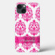 Personalize este bonito estojo de cor damasco de vintage, cor-de-rosa brilhante brilhante e branco, com seu nome ou iniciais de monograma, para modelos de texto personalizáveis para criar um gabinete personalizado especial único e na moda para proteger seu dispositivo. Esta tradicional design moderna, com padrão feminino, modelada por fochsia clássica, é inspirada por um wallpaper antigo seria excelente para qualquer garota, que gosta do estilo retrô feminino. Visite a LOJA PERSONALIZEDSKINS para capas correspondentes.