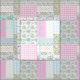 Um bonito tecido Faux Patchwork com Rosas de Cachorro Florais, Verificações, Stripes e Bolinhas da coleção Posh & Painterly 'Rosy Posy'.