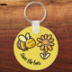Chaveiro amarelo bonito com um abelhão cheirando uma flor, você pode personalizar seu próprio texto.