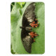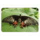Este incrível ímã mostra uma fotografia de uma bela borboleta tropical. Esta espécie é negra e dourada com manchas vermelhas vivas em cada asa. A fotografia foi tirada usando macrofotografia para um resultado incrivelmente detalhado.