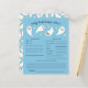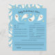 Pequenas e bonitas predições de bebês de chá de fraldas e cartão de aconselhamento com ilustração de fantasmas com estrelas. O fundo é azul. Um jogo perfeito para jogar durante o chá e definitivamente será um excelente! O cartão aos hóspedes para predizer como o bebê se pareceria.
