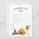 Um pequeno chá de fraldas de abóbora de Halloween quer um cartão de bebê. Design moderno do Halloween para uma festa de dois! Esta placa de chá de fraldas contém uma abóbora, um chapéu de bruxa, um balão, cornos doces e estrelas. Este cartão é excelente para meninas e chás de garotos!