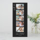Este elegante marcador de fotos Salvar a placa de data em preto apresenta uma fonte moderna de script emparelhada com fontes serif e sans-serif, criando uma aparência contemporânea. A frente exibe cinco imagens do casal, enquanto o verso permite que você carregue um código QR e faça um link para o site do seu casamento. Para personalizar o design, basta clicar no botão 'Editar/Personalizar'. Estes marcadores de fotos salvas são uma maneira perfeita de anunciar seu dia especial para amigos e familiares.