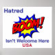 Use este estilo cômico BOOM! O ódio não é bem-vindo aqui como uma declaração ousada de protesto contra as ações atuais de administração. Quer você carregar em março ou pendura em uma parede, a mensagem é clara.