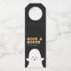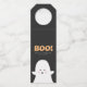 "BOOS & BOOZE" Halloween - hanger/etiqueta de garrafa com um fantasma branco de desenho animado com fundo preto e texto branco e laranja. Minimalista, moderno e divertido. Vem com design frontal e traseira para atender às suas necessidades e preferências. Todo o texto é personalizável, personalize com breve saudação, ano e nome do remetente/doador. Excelente para a festa temática do Halloween ou presente de Halloween.