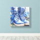 Esta canvas impressa apresenta uma ilustração encantadora do estilo aquarela de botas de caminhada azuis cercadas por delicadas flores azuis contra um fundo branco nítido. A composição é articamente cortada de uma maneira intrigante, misturando encanto rústico com matizes inspirados na natureza e evocando as alegrias simples de caminhadas no campo, aventuras no campo e tempo passado no excelente ao ar livre.