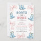 Arranja alguma diversão - É uma Revenda de Gênero! Celebre o momento empolgante com nosso charmoso Cartão de Convite para Revelação de Gênero, Boots ou Arcos. Apresentando um tema lúdico ocidental, este convite captura o suspense e a alegria de descobrir se é botas para um menino ou arcos para uma menina. Com elementos rústicos e detalhes bonitos, é a maneira perfeita de convidar pessoas amadas para sua revelação especial. Personalizável com seus detalhes de eventos, este cartão é ideal para festas estilo país, churrascos de quintal ou celebrações confortáveis em casa. Impresso em cartolina de alta qualidade com cores vibrantes, é um cuidado que seus hóspedes vão gostar. Recursos do produto: -Texto totalmente personalizável - Disponível em vários tipos e tamanhos de papel - design Ocidental azul e rosa com gráficos de arco e inicialização - Perfeito para qualquer pessoa que revelasse gênero Prepare-se para lançar um entusiasmo - a grande revelação é apenas uma carta de distância!