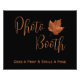 Apaixonar-se, o tema do casamento rústico das folhas Photo Booth, Agarre-se a uma proa e Strile-A-poster para as recém-casadas. Cobre elegante e simples, marrom, com fundo preto. Belo campo, outono, tema design. Imagem copyright Marg Seregelyi Fotografia.