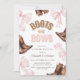 Celebre a antecipação do gênero do seu pequeno com nosso belo projeto Boots ou Arcos Tema Gender Reveal Invitation. Perfeito para uma festa de revelação de gênero no oeste ou no rodeio, este convite apresenta belos arcos cor-de-rosa e botas de vaqueiro simbolizando o tema clássico "Ele ou ela".