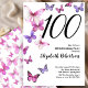 Borboleta 100º Aniversário Convite Rosa/Roxo