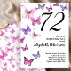 Este bonito e caprichoso convite de 72 anos é perfeito para uma boa festa e dará um tom divertido e comemorativo. Esta design apresenta borboletas roxas e cor-de-rosa, e é uma boa escolha feminina para um evento especial para celebrar um aniversário de um marco. Personalize para o seu próprio ano de aniversário e procure "72" no meu compro para ver designs coordenadores.