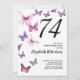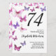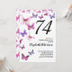 Borboleta 74.º Convite de Aniversário em Rosa/Roxo