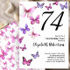 Este bonito e caprichoso convite de 74 anos é perfeito para uma boa festa e dará um tom divertido e comemorativo. Esta design apresenta borboletas roxas e cor-de-rosa, e é uma boa escolha feminina para um evento especial para celebrar um aniversário de um marco. Personalize para o seu próprio ano de aniversário e procure "74" no meu compro para ver designs coordenadores.