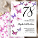 Borboleta 78.º Convite de Aniversário em Rosa/Roxo