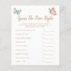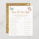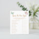Cartão de jogo "o preço está certo" com o tema da borboleta branca, com ilustração de borboletas verdes cor-de-rosa e hortelã com pontas de ouro falsas. Os textos são editáveis. Um jogo perfeito para jogar durante o chá. Enumera o essencial do bebê e aos hóspedes para adivinhar o preço. Quem quer que adivinhe o preço mais próximo ganha!