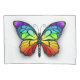 Borboleta monarca realista em todas as cores do arco-íris num fundo branco. Borboleta-arco-íris.