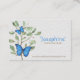 Borboleta cartão de visita duplo. O fundo tem um efeito manchado com a decoração de imagens de borboletas aquáticas.
