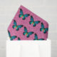 Borboleta Azul No Papel De Tecido Brilhante Rosa