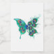 Borboleta detalhada, desenhada artificialmente, ficcional, verde, com penas verdes, bonitas e pavões em fundo branco.
