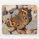 Linda borboleta Buckeye mostrando-se na rocha do rio.