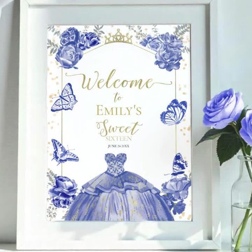 Watercolor Floral Royal Blue Photo Sweet 16Criado por CaMi Designs
