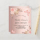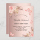 Um fundo rosa dourado, gradiente de cinza. Decorados com ouro rosa e flores, rosas, erva-pampas e borboletas cor-de-rosa. Personalize e adicione um nome e detalhes da parte.