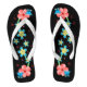 © Sunny Mars Designs. Borboleta em Flores Chinelos Azuis Personalizados - Canetas Bonito para crianças com ilustração gráfica vetorial design floral de uma borboleta abstrato sentada sobre uma flor tropical de hibisco rosa com outras margaridas azuis e amarelas como as flores acima. A cor preta do plano de fundo pode ser alterada.