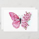 Arranjo de flores de borboleta cor-de-rosa com cereja japonesa cor-de-rosa floresce em fundo branco.