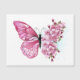 Arranjo de flores de borboleta cor-de-rosa com cereja japonesa cor-de-rosa floresce em fundo branco.