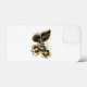 Borboleta de flores Dourada com orquídea de joias pretas, decorada com folhas de ouro sobre fundo branco.