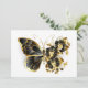 Borboleta de flores Dourada com orquídea de joias pretas, decorada com folhas de ouro sobre fundo branco.