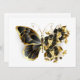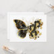 Borboleta de flores Dourada com orquídea de joias pretas, decorada com folhas de ouro sobre fundo branco.