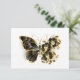 Borboleta de flores Dourada com orquídea de joias pretas, decorada com folhas de ouro sobre fundo branco.