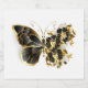 Borboleta de flores Dourada com orquídea de joias pretas, decorada com folhas de ouro sobre fundo branco.