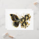 Borboleta de flores Dourada com orquídea de joias pretas, decorada com folhas de ouro sobre fundo branco.