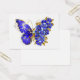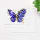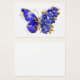 Borboleta de flores cinza, azul, safira, espumante com asa decorada com flores preciosos azuis com folhas de ouro sobre fundo branco.
