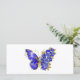 Borboleta de flores cinza, azul, safira, espumante com asa decorada com flores preciosos azuis com folhas de ouro sobre fundo branco.