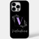Nome do monograma de script roxo moderno com borboletas. Dica: basta mostrar ou ocultar a carta para facilitar o processo de personalização.