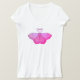 Camisa da mariposa em púrpura e rosa com ilustração mágica e comovente de uma mariposa na noite com meia lua e estrelas sobre fundo roxo escuro.