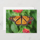 A magnífica Monarca exibindo seu belo padrão em meio a uma planta de lantana vermelha e amarela.