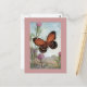 Cartão postal com uma imagem vintage de uma borboleta Monarca sobre o trevo roxo