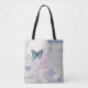 Uma bolsa de tote de borboleta musical encantadora em tons azuis e brancos calmantes, adornada com uma encantadora fusão de borboletas balançantes e notas musicais graciosas. Perfeito para carregando seu essencial com estilo, este design branco é ideal para entusiastas da música e amantes da natureza. Um acessório versátil para uso diário ou outdoors especiais.