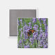 Uma borboleta pequena e tortuosa numa flor de lavanda faz um design adorável para este ímã de geladeira