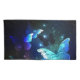 Fabulosa, brilhante, azul e amarela, borboleta noturna sobre fundo escuro.